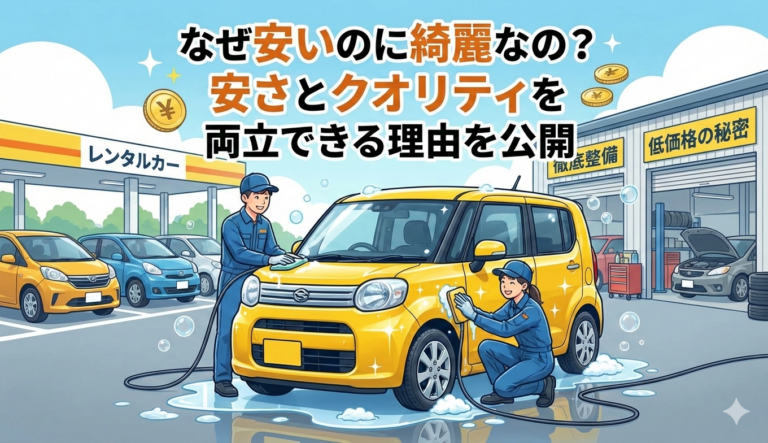 なぜ安いのに綺麗なの?安さとクオリティを両立できる理由を公開【グッドバリューレンタカー静岡】 2026年2月26日 「格安レンタカーって、正直ちょっと不安……」静岡市(葵区・駿河区・清水区)でレンタカーをお探しの方の中には、そんなイメージをお持ちの方も少なくありません。しかし実際には、価